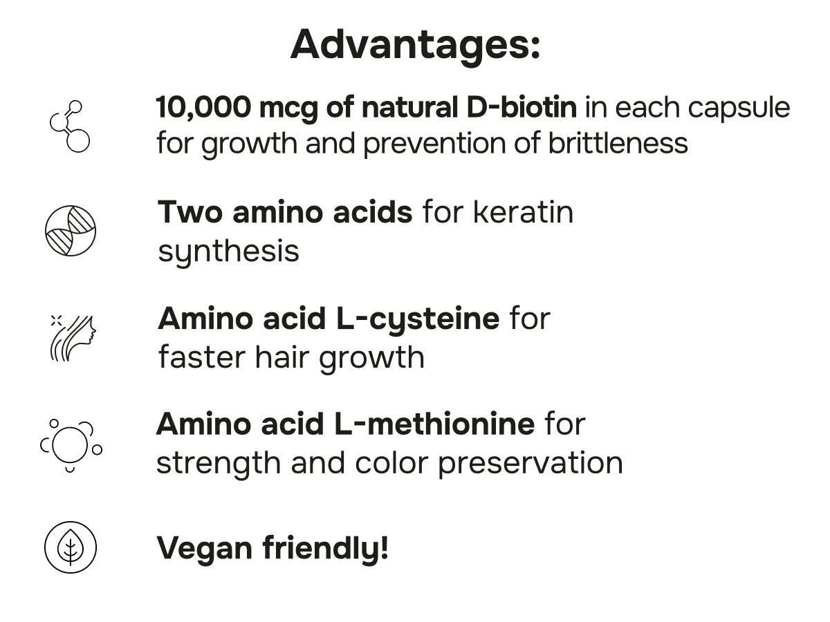 - 10,000 mcg of natural D-biotin in each capsule